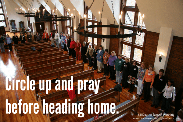 You may want to give your women an opportunity to pray out loud or you may just want your retreat team leader to pray over the group.