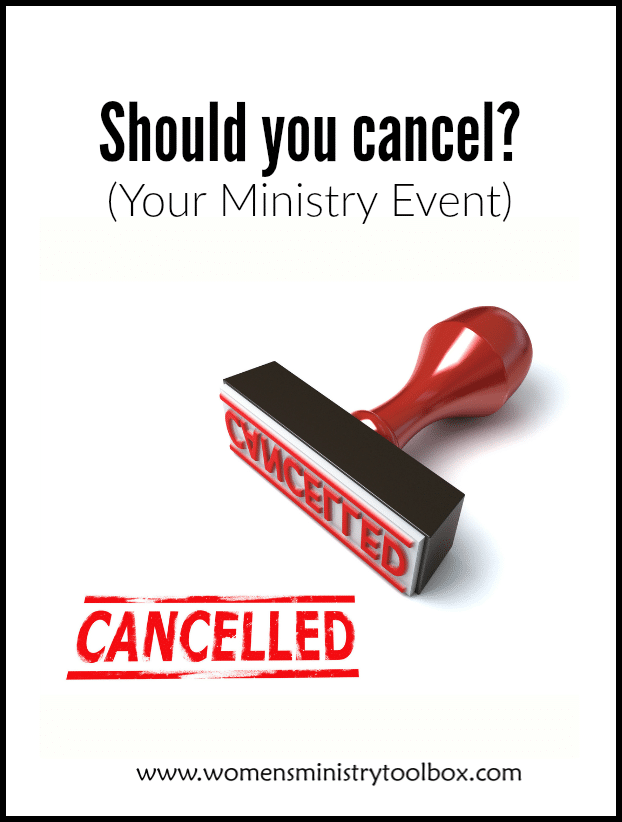 - Continuing with the event would be a financial burden to the church. Be certain you gather input from the Pastoral staff and Church Treasurer before making this call yourself. There may be funds you are unaware of or grace may be extended and a budget shortfall allowed.