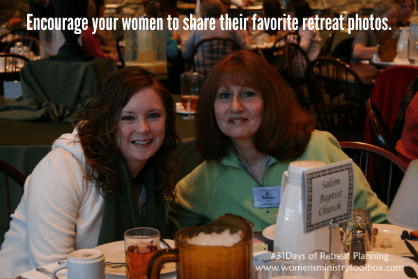 - Plan a women’s ministry dessert or potluck with a time of reflecting on the retreat. Let women share what’s stuck with them. Put together a slide show or video to share.
